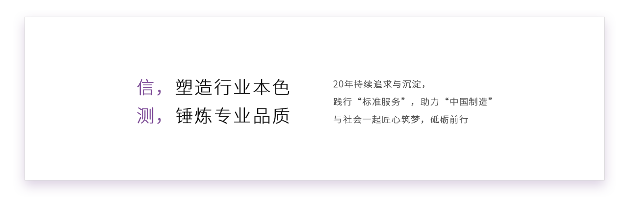 信測標準擁有多項專利技術(shù)和軟件著作權(quán),先后獲得“國家級高新技術(shù)企業(yè)”、“廣東省中小企業(yè)公共技術(shù)服務(wù)示范平臺”、“江蘇省生產(chǎn)性服務(wù)業(yè)領(lǐng)軍企業(yè)”、“廣東省名牌企業(yè)”、“深圳市生產(chǎn)性服務(wù)業(yè)公共服務(wù)平臺”等稱號。公司秉承“立信、善測”的經(jīng)營理念,致力于通過卓越的服務(wù),幫助客戶提高研發(fā)和創(chuàng)新水平,提升產(chǎn)品質(zhì)量,創(chuàng)造美好生活。